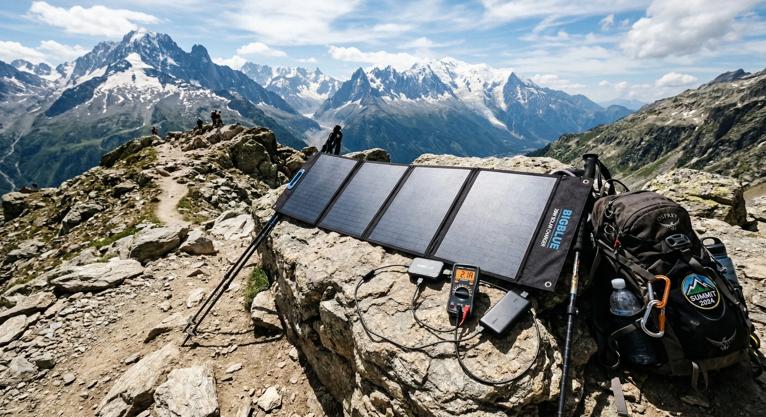 For riders exploring arid Bikepacking Routes with high solar exposure, the BigBlue 28W offers the best wattage-to-dollar ratio. It is a foldable array designed for stationary or low-speed use.
