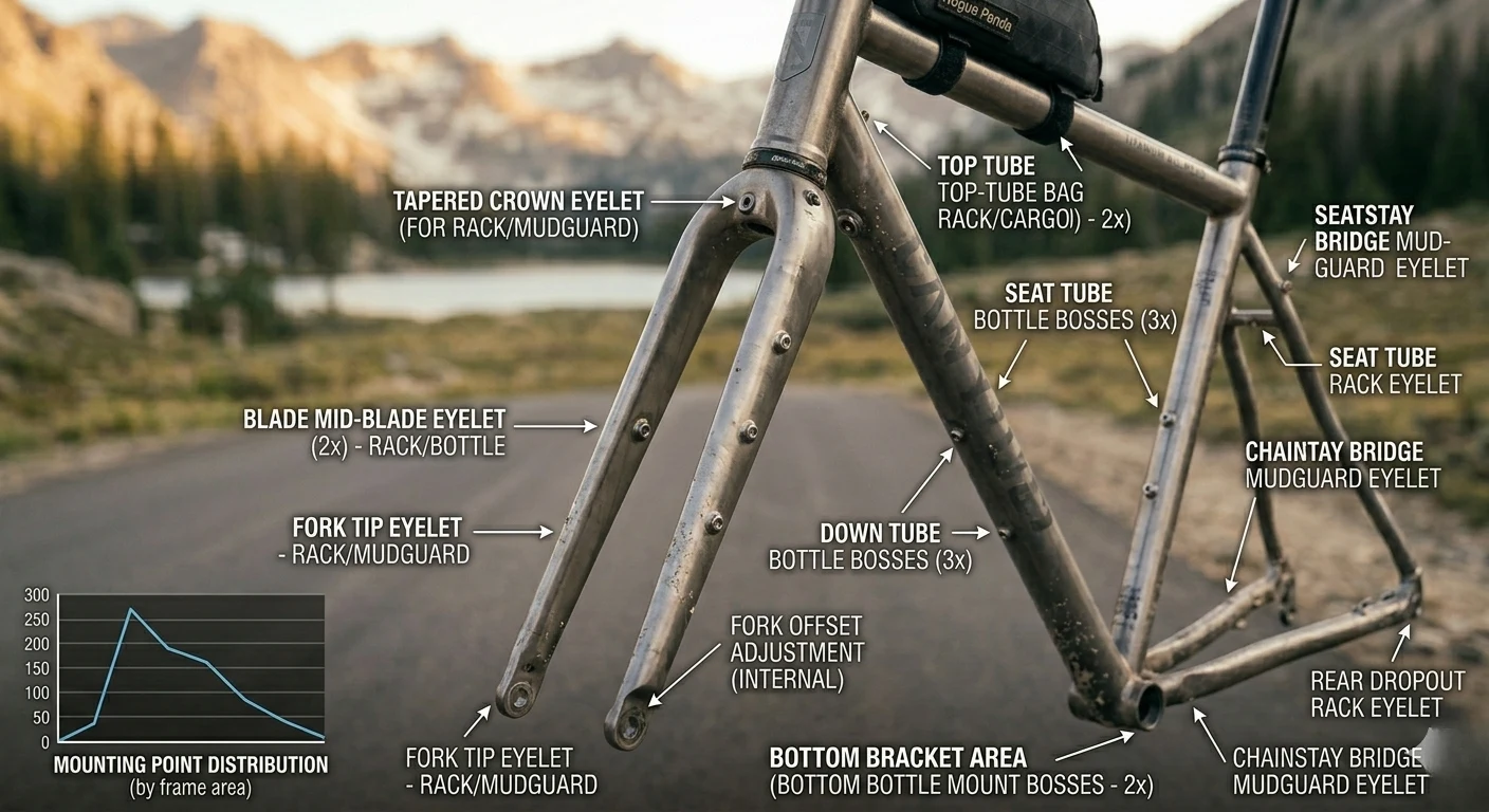 - Underside Down-Tube Mounts: Useful for carrying heavy tool rolls or a third water bottle.