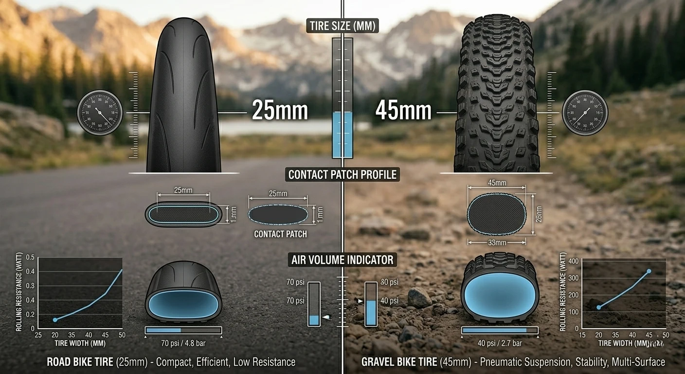 | Tire Width | 25mm – 30mm | 38mm – 50mm | 2.1″ – 2.4″ |