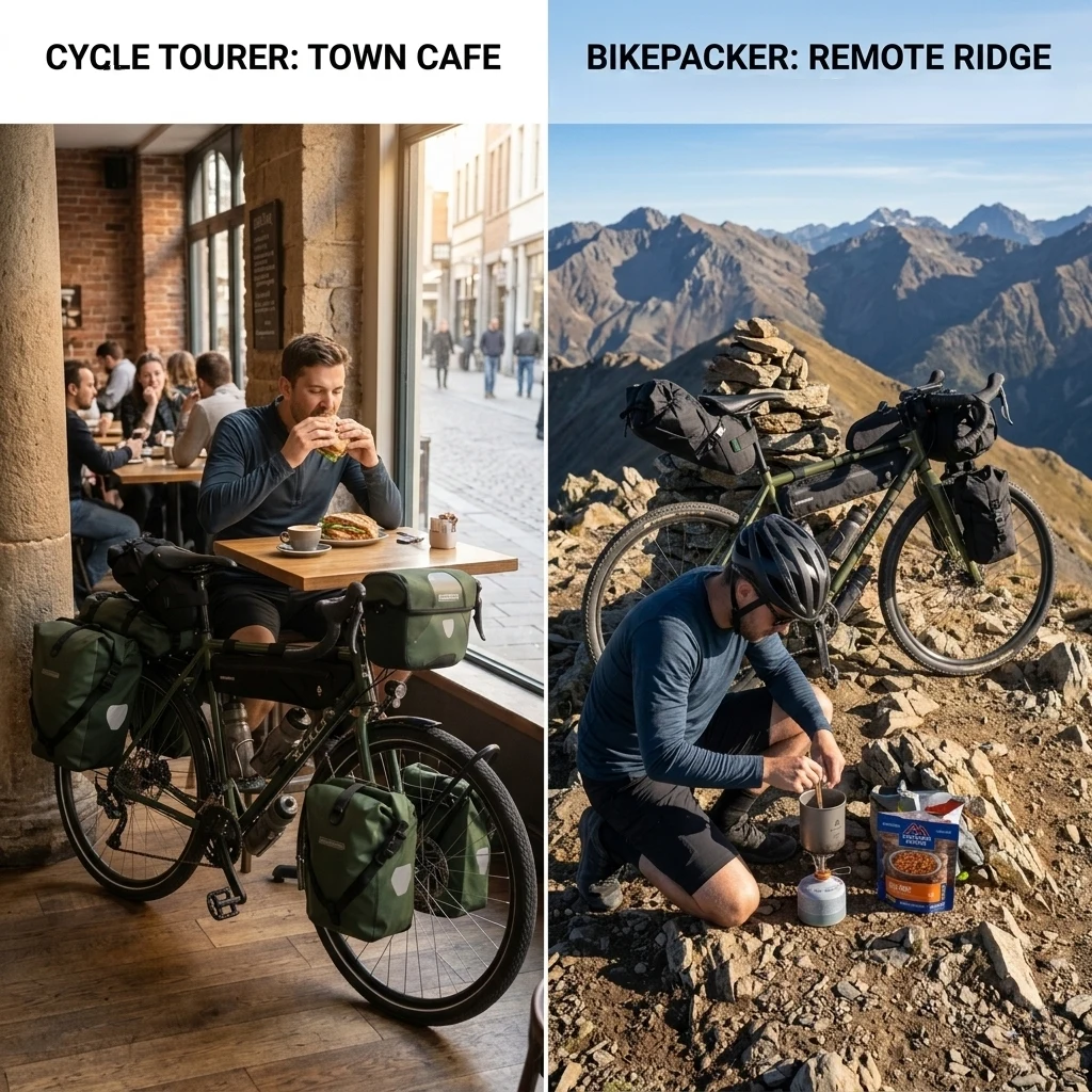 The logistical planning for sleep and recovery differs greatly between bikepacking vs cycle touring. One style relies on organized support, while the other prioritizes total isolation from human structures.